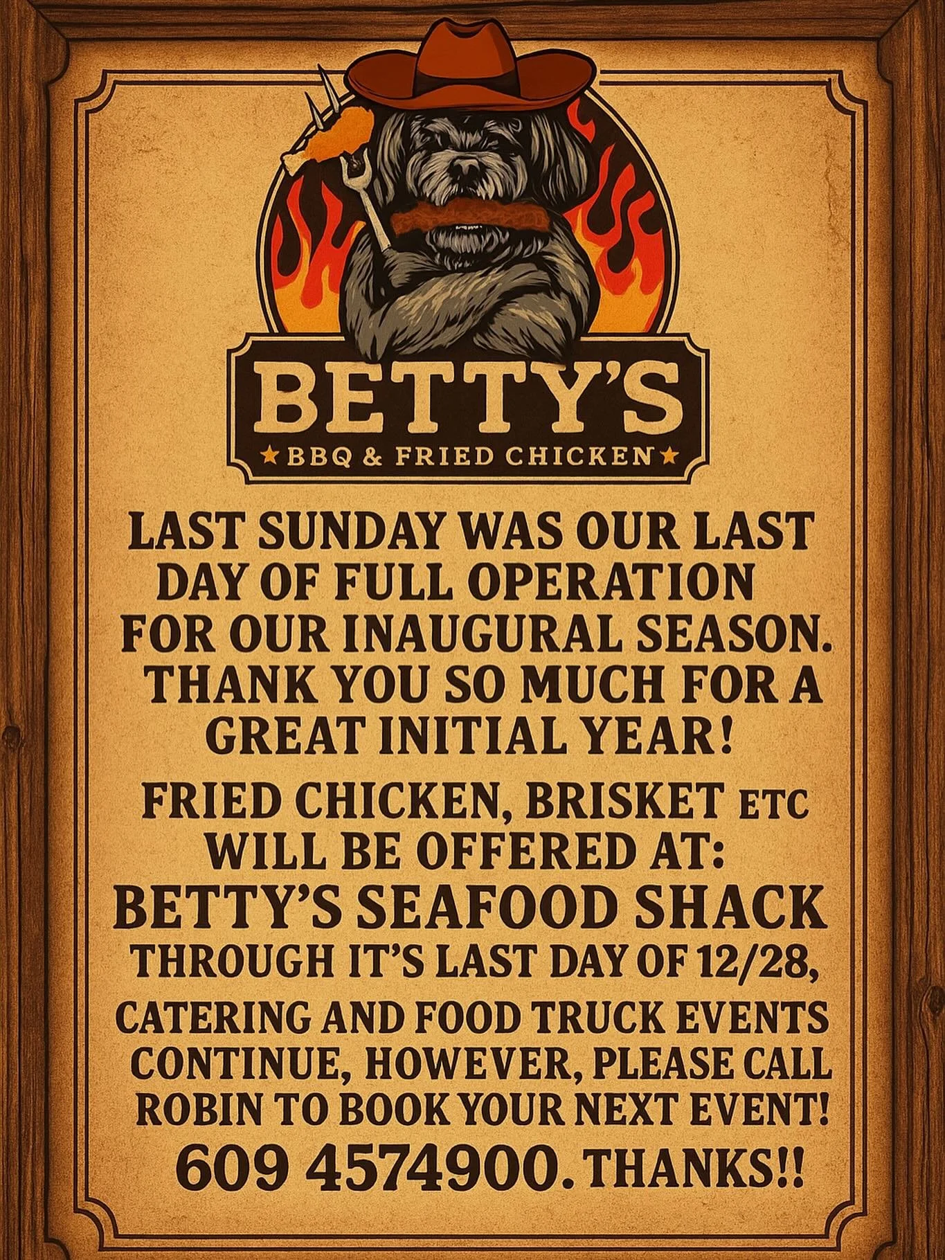 Fried Chicken, Brisket & More Will Be Offered At Betty’s Seafood Shack Until 12/28